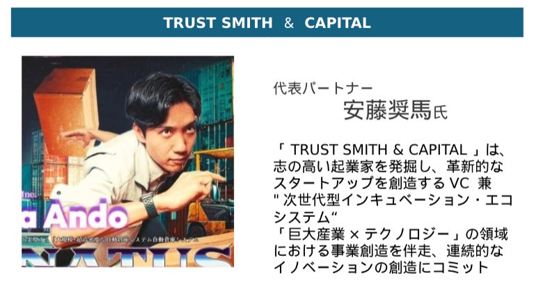 In this fund, the participation of local business companies and financial institutions has accelerated more than in the previous fund, and we will take on the challenge of producing many successful cases that contribute to the revitalization of local economies and cross-regional collaboration.